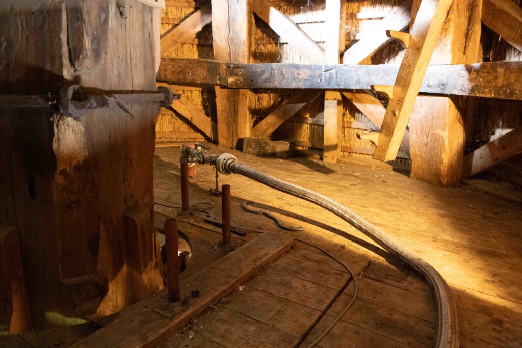 Er is een luchtleiding naar de molen aangelegd, de testsetjes zijn vernieuwd en in de technische ruimte gemonteerd. Tot slot zijn de zuigput en de zuigleiding voorzien van verwarming.