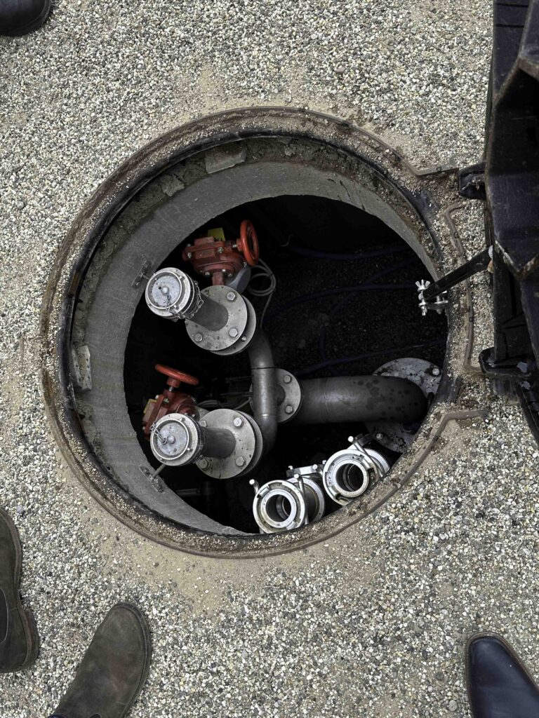 De installatie beschikt over een aansluiting waarop de brandweer bluswater kan toevoegen.